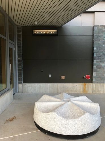 The 16-character split-flap sign, such as those commonly found in transit center holds twenty didactic and cryptic graphics images, revealed as the stone turns. The sign shows maps, cultural information, math and science images and four poems written by Vermont Poet Laureates. A website, https://counterrotation.net/gives complete information about the sign’s contents as well as the stone.