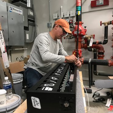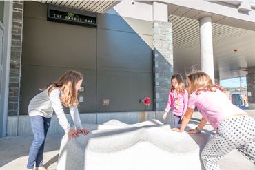 The round, Barre gray, granite bench resembles a millstone, as grist mills were common along the Winooski and North Branch Rivers in the 1800’s. Visitors sitting on the rotating bench are invited to turn the stone counter-clockwise. Each time it completes one full rotation - the bronze marker passing North - the adjacent split-flap sign is triggered and flutters to the next graphic. In this way, the two components of the sculpture are invisibly linked, the stone activating the sign.